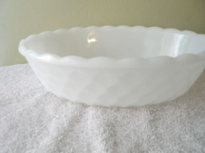 VINTAGE E.O. BRODY MILK GLASS SCALLOP EDGE OVAL BOWL
