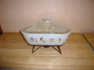 VINTAGE RETRO MILK GLASS TRIANGLE INLAND CHAFING DISH