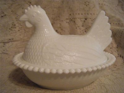 Vintage Milk Glass~Hen On Nest~Butter/Candy Dish~NR~