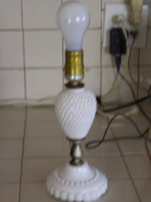 WHITE MILK GLASS TABLE LAMP 11 INCH TALL AND IT WORKS