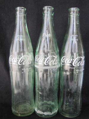 Title (ebay affiliate link): Vintage Lot 3 Coca Cola Coke Green Glass Bottle 11"