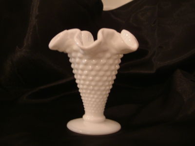 BEAUTIFUL FENTON HOBNIAL MILK GLASS RUFFLED VASE