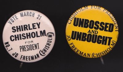 2 Shirley Chisholm for President, campaign buttons