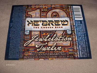 Title (ebay affiliate link): Beer label SHMALTZ brew JEWBELATION TWELVE 12TH ANNIVERSARY ALE