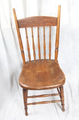 L485 ANTIQUE AMERICAN OAK PRESSED BACK CHAIR