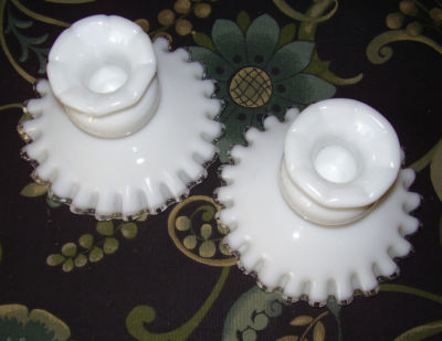 Title (ebay affiliate link): VINTAGE FENTON SILVER CREST MILK GLASS RUFFLE EDGE CANDLE HOLDER SET PRE 1973