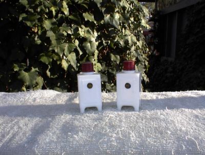 NICE OLD MILKGLASS SET OF "GE" REFRIDGERATOR SALT AND PEPPER SHAKERS