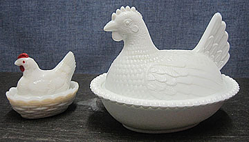 Lot 2 Vintage Hen Milk Glass Small & Large