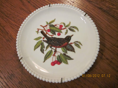 Title (ebay affiliate link): BEADED WESTMORELAND MILK GLASS AMERICAN ROBIN PLATE/HANGER 7 3/8" L@@K