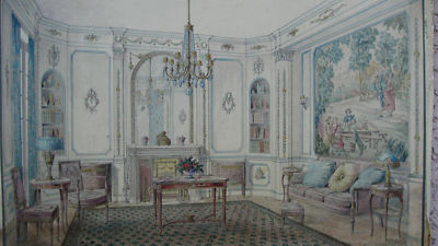 Title (ebay affiliate link): ANTIQUE Watercolor Painting New York City Interior Early 1900's Furniture Design