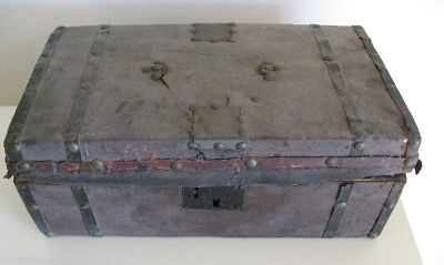 Title (ebay affiliate link): Antique Civil War Small Trunk Leather & Brass Tacks Wood Travel Chest ORIGINAL