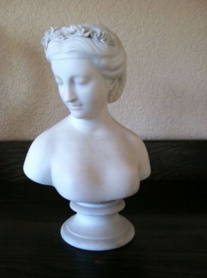 Title (ebay affiliate link): An antique Parian Bust in Excellent Condition - Woman with beautiful hair. Nice