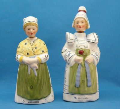 PAIR C1900S FRENCH PORCELAIN LADY FIGURE PERFUME BOTTLE FLASKS
