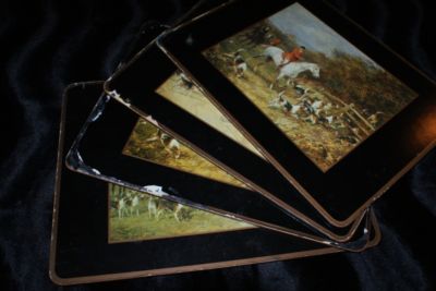 Title (ebay affiliate link): BRITISH tea trays HUNTING ART pimpernel COLLECTION dogs HORSES fox rare COLORFUL