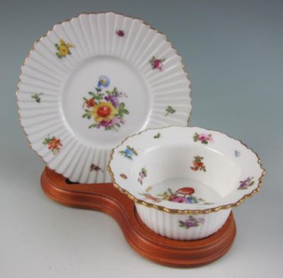 19th C. CARL THIEME POTSCHAPPEL Ramekin Finger Bowl w/ Plate Dresden Porcelain 1