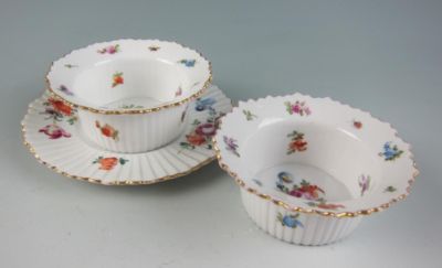 EARLY CARL THIEME POTSCHAPPEL Bowls w/ plate INSECTS Dresden Porcelain Ramekin