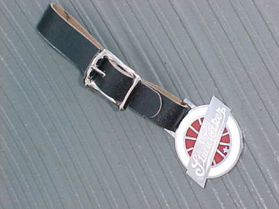 STUDEBAKER WHEEL SCRIPT METAL LEATHER QUALITY WATCH FOB