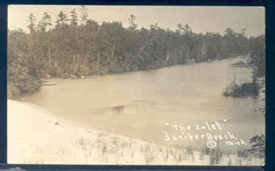 MI, Juniper Beach, Michigan, RPPC, Inlet Beach, Canoeing, Shoreline View,E Photo