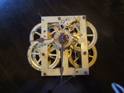 VINTAGE ANTIQUE OG BRASS CLOCK MOVEMENT WITH HANDS