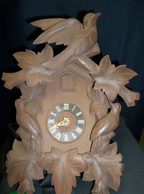 Title (ebay affiliate link): ANTIQUE GERMAN REGULA CUCKOO CLOCK LARGE 16" BIRD & LEAF MUSICAL