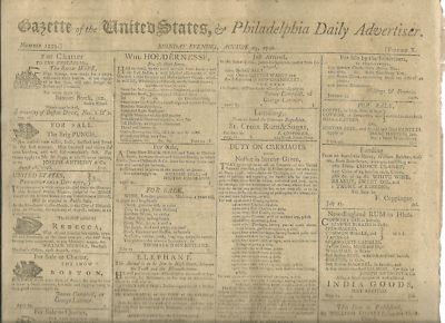 Title (ebay affiliate link): Early American 1796 newspaper GAZETTE OF THE UNITED STATES 1796