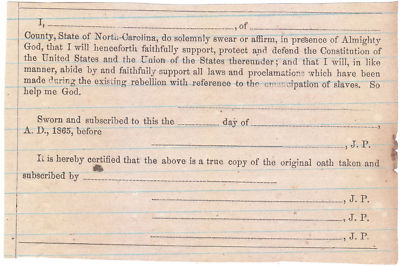 CONFEDERATE PAROLE DOCUMENT GREENSBORO, N.C. 1865