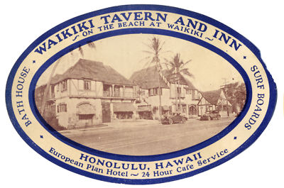 Title (ebay affiliate link): 1920's Waikiki Tavern Hawaii Hotel Luggage Label ~ N. Wyman Sticker Collection