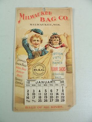Title (ebay affiliate link): Antique Victorian Trade Card 1898 Calender Milwaukee Bag Co. Wisconsin