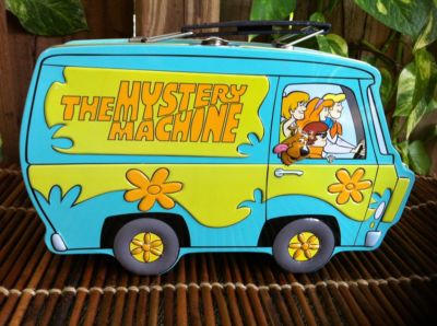 Title (ebay affiliate link): Scooby Doo The Mystery Machine Tin Lunchbox Hanna Barbera 2000 with Handle