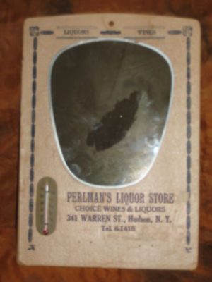 Perlman's Liquor Sign Thermometer Mirror Hudson NY Antique Advertising Tel8-1418