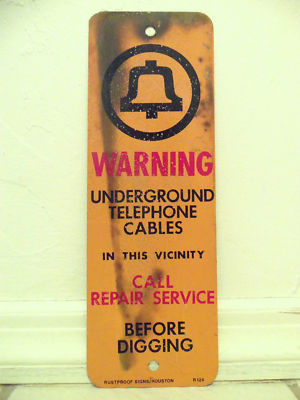 VINTAGE BELL TELEPHONE ORANGE & BLACK WARNING SIGN
