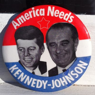 Title (ebay affiliate link): JFK Kennedy - Johnson America Needs 3.5 Jugate Political Button Larger Vintage