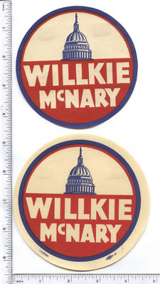 Title (ebay affiliate link): 1940 WILLKIE McNARY Two Round Window Windshield Automobile Decal Auto Decal
