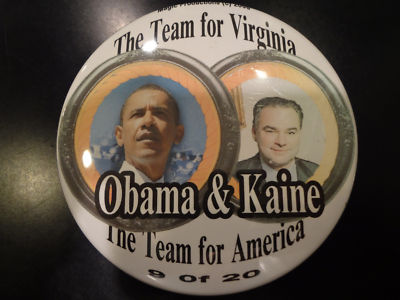 Title (ebay affiliate link): Barack Obama Kaine Jugate Campaign Button RARE Martinsville Virginia VA 3 1/2"