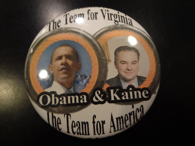 Title (ebay affiliate link): Barack Obama Kaine Jugate Campaign Button RARE Martinsville Virginia VA 2 1/4"