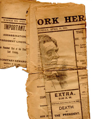 Title (ebay affiliate link): Abraham Lincoln Newspaper Saturday April 15 ,1865 asis