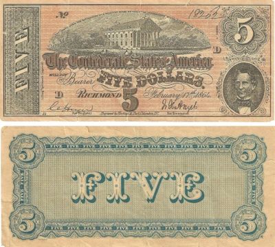 Title (ebay affiliate link): CONFEDERATE STATES Reproduction Play Money $5 Denomination 50+ Years Old