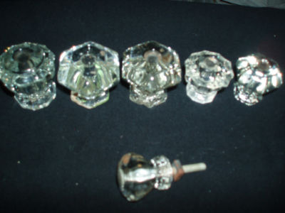 6 CLEAR DEPRESSION GLASS DRAWER PULLS - VINTAGE