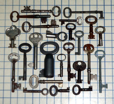 Antique Vintage old skeleton key lot furniture cabinet barrel padlock lock craft