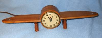 VINTAGE ANTIQUE WOOD ELECTRIC SHELF WAR PLANE CLOCK