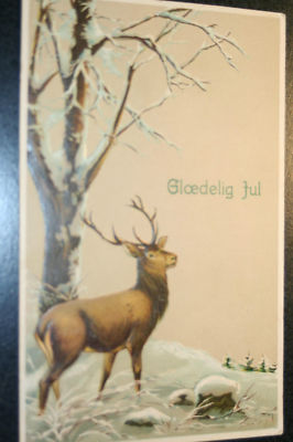 Vintage Christmas Postcard, Danish 10 Ore red postage stamp, Gloedelig Jul