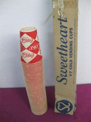 Title (ebay affiliate link): 64 Vintage SWEETHEART COCA-COLA Paper Vending CUPS/BOX COKE
