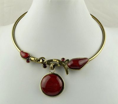 Title (ebay affiliate link): Vintage retro art deco antique style jewellery red and gold choker necklace