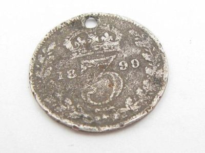 Title (ebay affiliate link): ANTIQUE VICTORIAN 1890 DRILLED THREEPENCE COIN IDEAL FOR CHARM