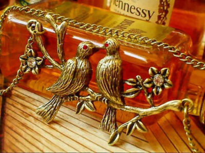 Title (ebay affiliate link): Antique Branch Flower Red eye Lover Bird Necklace X64