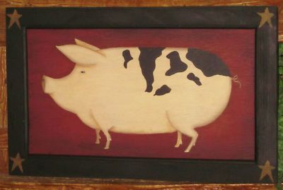 *~*PRIMITIVE*~* HP FOLK ART PIG *~* DOOR PANEL