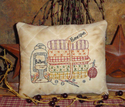 Title (ebay affiliate link): ~HOMEPSUN BUTTONS~ Primitive Stitchery Sampler Pillow