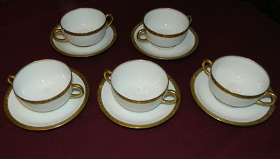 Title (ebay affiliate link): 1930's Limoges 2 Handle (5) Soup Cup bowls Vignaud France Ivory gold Porcelain