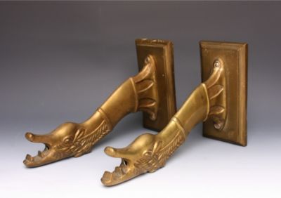 Arts & Crafts Gilt Cast Bronze Boar's Head Coat & Hat Hooks