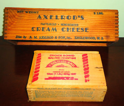 Title (ebay affiliate link): VTG Axelrod's Cream Cheese Wood Box Englewood N.J. & Codfish Wooden Box Lot of 2